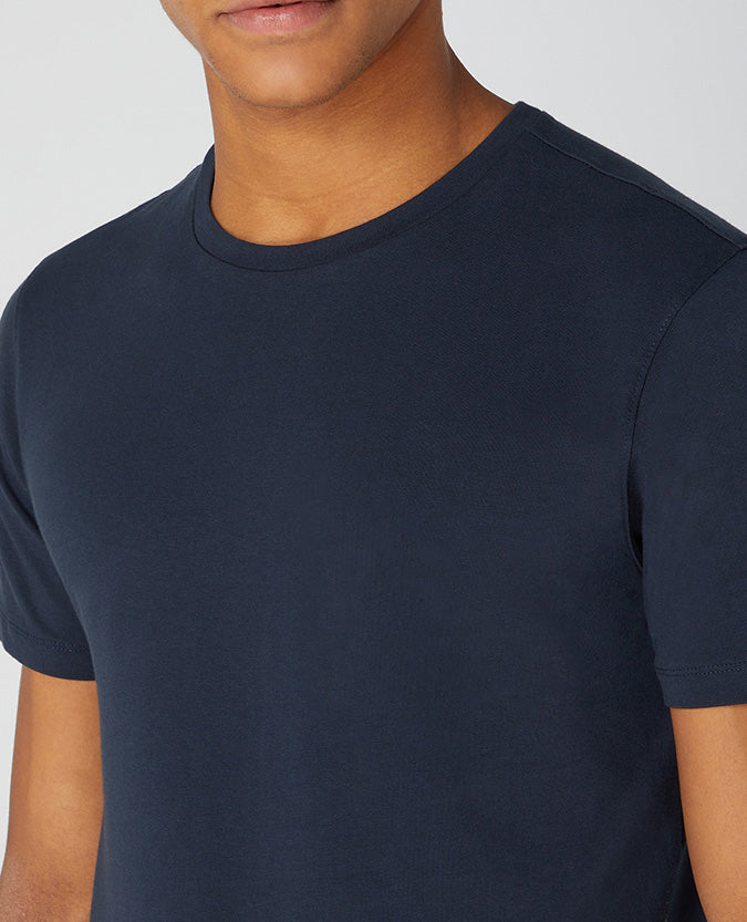 Navy blue tapered-fit short-sleeve t-shirt by Remus Uomo. Comfortable with a slight stretch and classic round crew neckline.